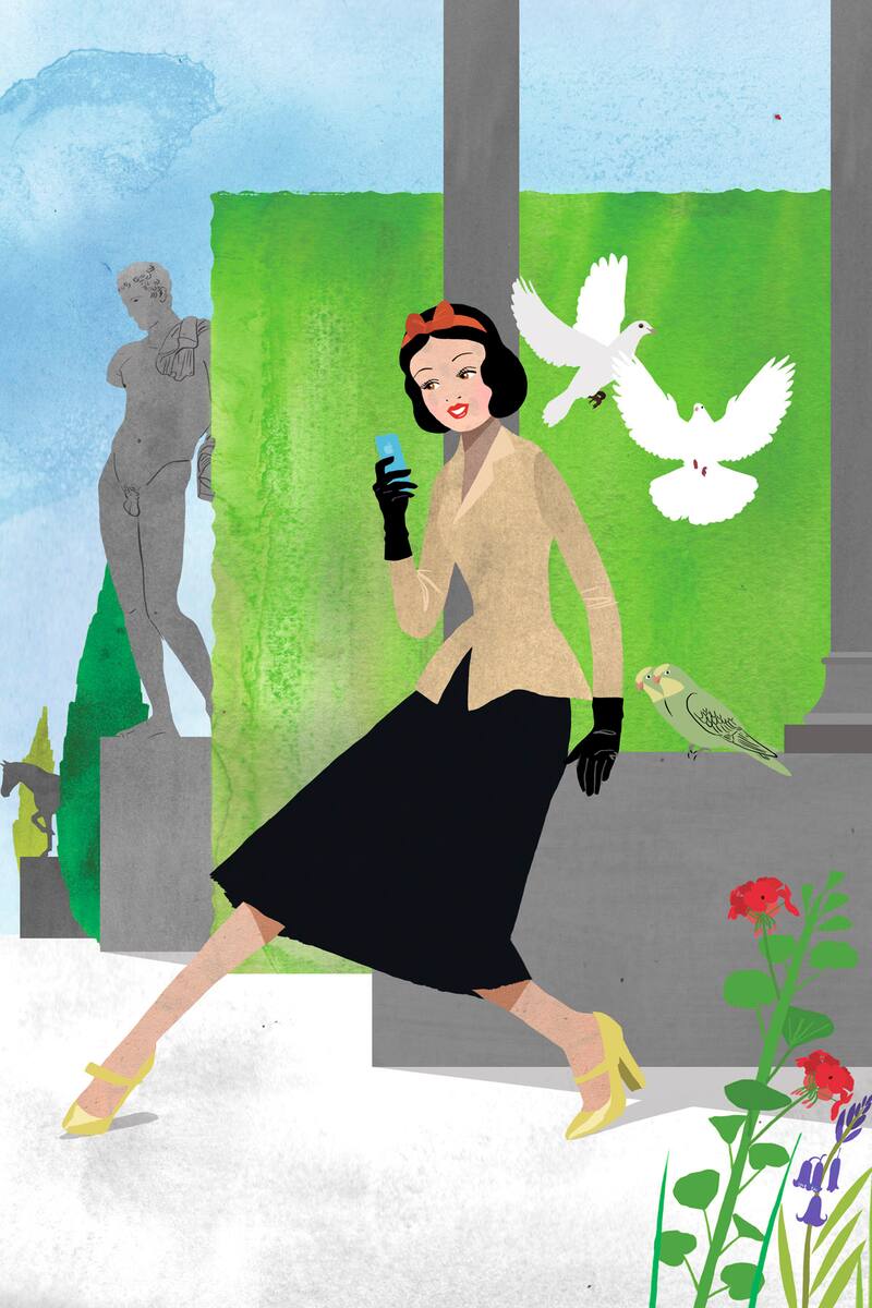 El 21 de diciembre de 1937 Walt Disney estrenó Blancanieves y Los Siete Enanitos, su primer largometraje de animación, considerado por la historia del cine como vanguardista en términos artísticos y técnicos. Luego vendrían todas las demás sufridas heroínas, con sus vestidos y peinados fantásticos. Pasan los años y la piel de Blancanieves se mantiene envidiable, como cuidada con los mejores cosméticos de la K-Beauty, mientras que ni una gota de ese rojo Dior desaparece de sus labios carnosos. Y, lo que es descrito como un vestido "harapiento", más bien recuerda a la pollera amarilla de tafetán del último desfile de Carolina Herrera. Entonces se disparan las fantasías. ¿Y si a través de estos 80 años de vida el clóset de Blancanieves hubiese sumado piezas icónicas de moda? ¿Blancanieves de mini dejando al descubierto sus piernas impolutas y suaves? El ilustrador chileno Mr William Draw lo hace posible.