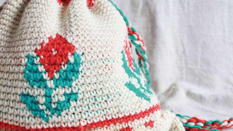 7. Cerrar con crochet en medio punto la parte inferior del bolso con lana color verde.