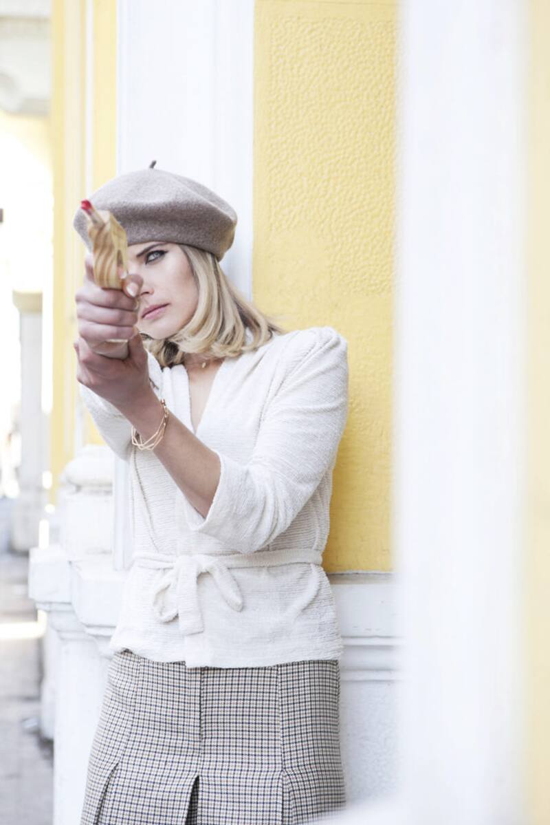 Boina, $19.990, Donde Golpea El Monito. Polera, $ 6.990, Reciclage I Love. Falda-pantalón, $ 8.990, Reciclage I Love. Pulsera, $ 4.990, Eclipse.[/caption]