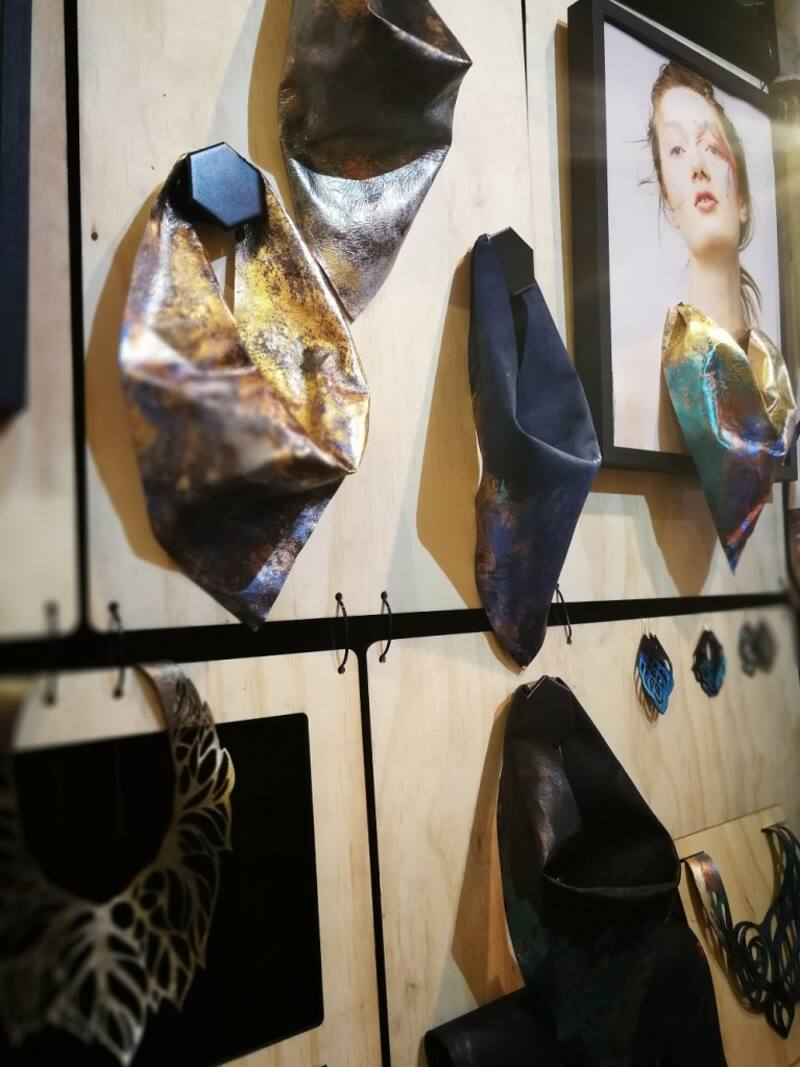 Pañoletas Phibra. Son piezas únicas, hechas con la última tecnología de impresión y corte láser. Stand 53. $ 26.000