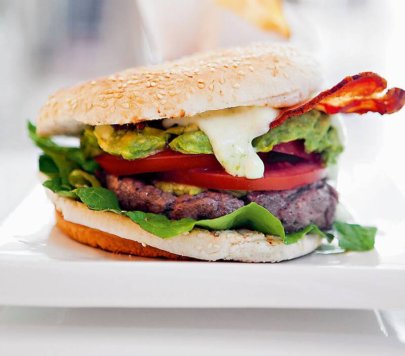 Hamburguesa Titanium: más que una hamburguesa se trata de una fricandela artesanal con queso cheddar, tocino crocante, tomate, palta molida, lechuga y mayonesa de ajo confitado. Llega acompañada de papas fritas caseras ($ 6.450).