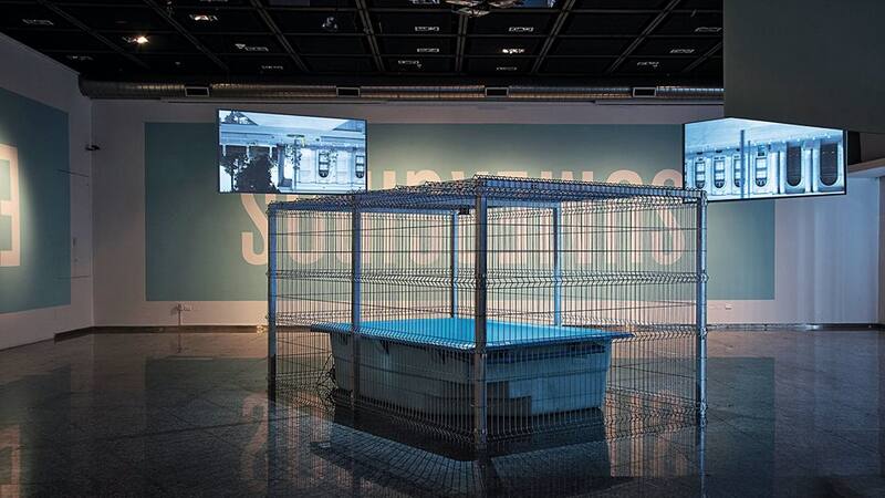 Cuatro grandes pantallas rodean la piscina colgando desde arriba. En ellas se proyectan las imágenes, también invertidas, de calles, muros y veredas vacías, donde el artista transitó durante este año, registrándolos en silenciosos planos secuencia. "Lo que hay en los videos es nuestro propio contexto visual invertido", explica el artista. "Las secuencias hablan de la soledad, del vacío que hay. Todos los videos están filmados apenas sale el sol, muy de madrugada. Es como la sensación del after party. Creo que a Chile le ha pasado eso; la fiesta del regreso a la democracia se acabó, las luces se apagaron y ahora debemos mirarnos a la cara, sin efectos especiales"