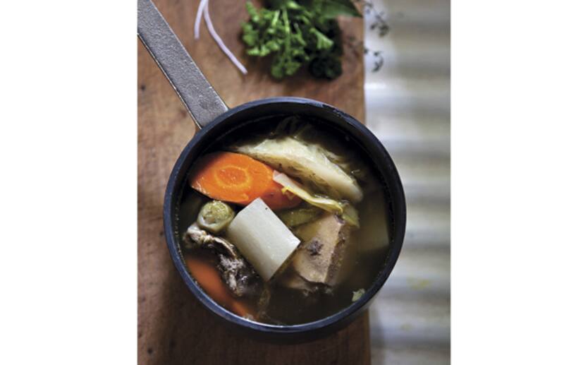 2. Antes de servir, calentar el caldo con las verduras, agregar los trozos de carne reservadas; cocinar 10-15 minutos hasta que esté bien caliente. Espolvorear con perejil y servir de inmediato.