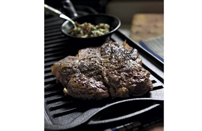 2. Pincelar la carne con el aceite y sazonar con la mezcla de pimientas. Calentar un sartén para grillar o una plancha a fuego alto, asar la carne por cada lado hasta obtener el grado de cocción deseado. Retirar de la parrilla y servir de inmediato espolvoreada de la sal de mar y un trozo de la mantequilla de chalotas.
