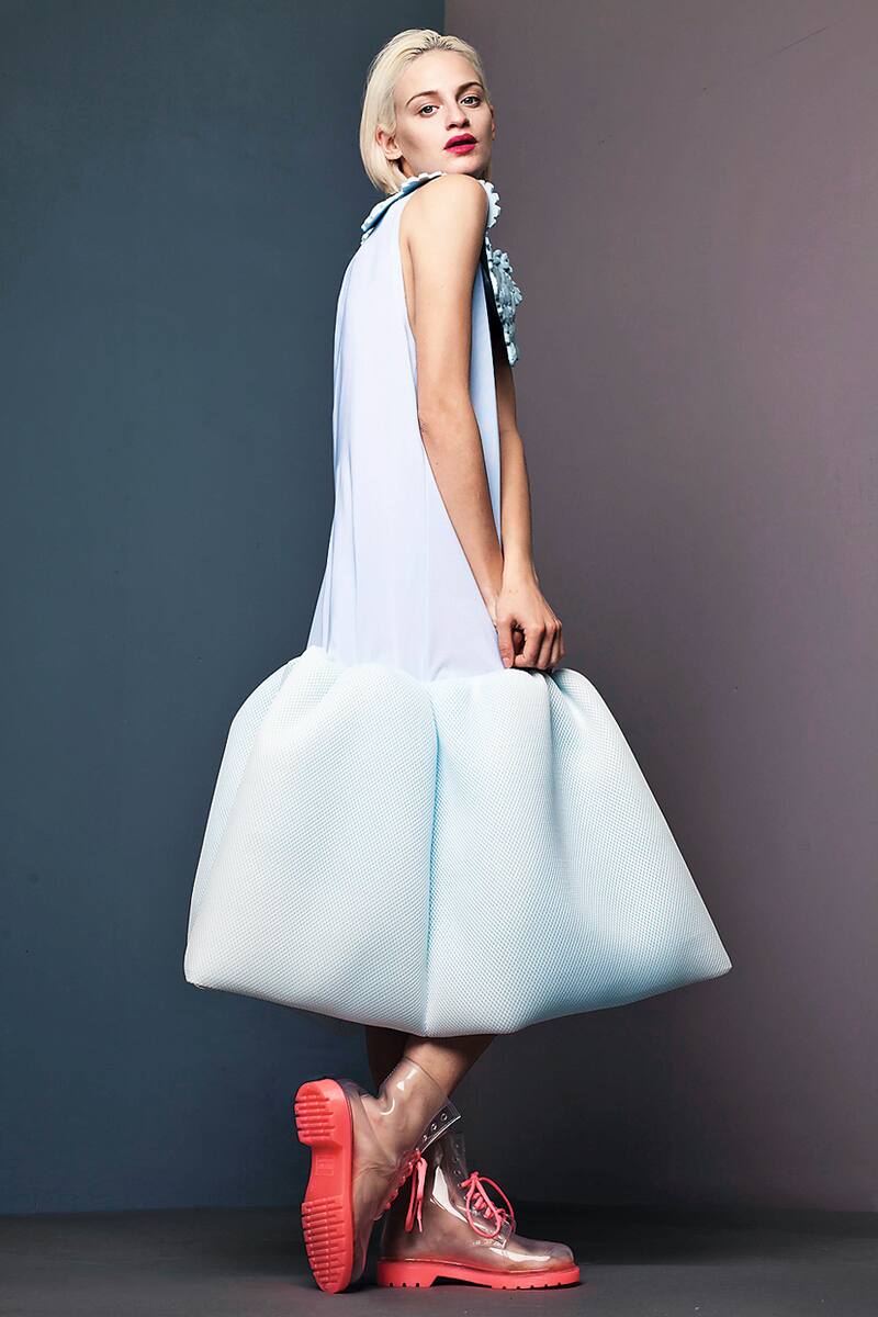 La especialidad de Xiao Li son los tejidos y con ellos cerró en febrero la plataforma del British Fashion Council en la Semana de la Moda de Londres. Ganadora de múltiples galardones, como el Feel The Yarn 2012 (competencia que premia diseños de tejidos innovadores) y el Mercedes-Benz China Designer Award 2015 (al mejor diseñador chino del año), lo suyo son las prendas voluminosas, esculturales, hechas con tejidos de hilos de lujo de origen chino e italiano, que cubre con silicona, y con materiales textiles tridimensionales de doble filamento. Un trabajo con referencias a las grandes estructuras de la arquitectura moderna, que tiñe en colores pasteles y brillantes. Vende en Asia, Estados Unidos y Europa. www.xiao-li.co.uk