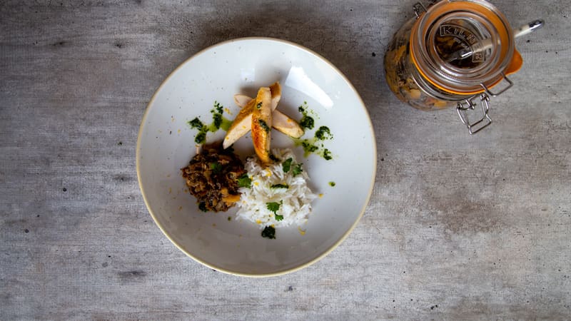 4. Sacar del fuego y enfriar o envasar al vacío en frascos. Este chutney queda muy bien combinado con pollo o pescado a la plancha y arroz basmati con hojas de cilantro.