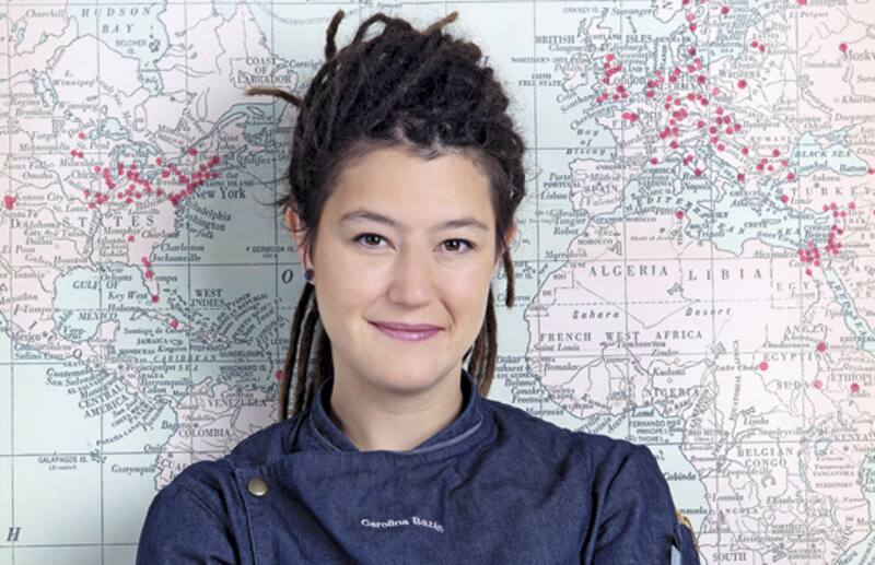A sus 34 años, la chef Carolina Bazán tiene un largo repertorio de viajes. Hija de diplomático, nació en Argentina, después vivió en Estados Unidos y Perú, donde volvió a hacer su práctica cuando terminó de estudiar Gastronomía en el Culinary. A pesar que desde 2003 trabaja en el restorán que sus padres abrieron en el centro de Santiago –El Ambrosía, hoy ubicado en Vitacura y aplaudido por la crítica desde que ella está al mando– todos los años se las arregla para viajar y aprender platos típicos de los lugares a los que va. Ha estado en Cuba, Brasil, Tailandia, Londres y en La Liguria, en Italia. De todos esos lados ha traído técnicas y preparaciones que adapta para entregar un sello propio a la cosmopolita carta de su restorán. Pero su gran viaje gastronómico fue en 2010, cuando se fue a París a hacer un curso intensivo de cinco meses en la Escuela Ferrandi. Los otros seis meses hizo su práctica en el restorán Frenchie del chef Gregory Marchand, quien trabaja con el concepto de cocina de autor en un local de 20 mesas. Ahí, Bazán tuvo que pasar más de 1.800 horas como su única ayudante, limpiando pescados, pelando arvejas y haciendo el mise en place de cada plato en una cocina diminuta sin freezer, porque Marchand solo trabaja con productos frescos e ingredientes recolectados por pequeños productores de la zona. "En París aprendí a respetar las temporadas y por eso hoy sé de donde vienen todos mis productos. Los locos, por ejemplo, solo entran en la carta cuando me los trae un pescador de Horcón que los pesca artesanalmente", cuenta.
