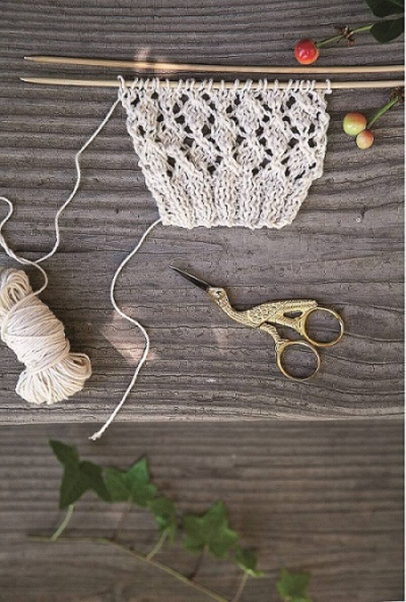 - Tejer con el punto leaf lace hasta alcanzar 77 cm.