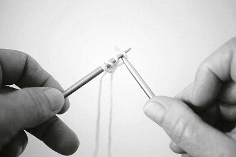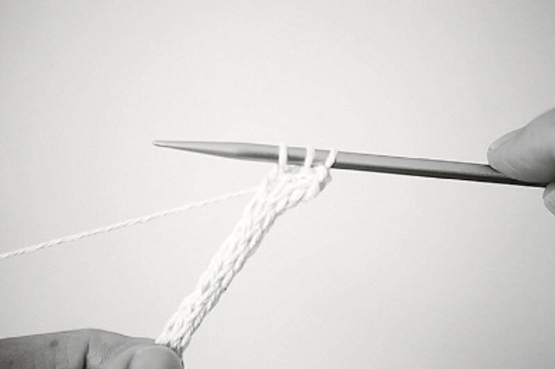 3. Con la hebra por atrás, tejerlos al derecho. Repetir esta secuencia hasta conseguir el largo deseado.