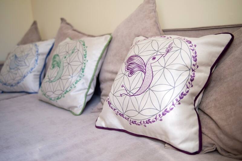 Una línea de cojines de algodón y felpa con motivos inspirados en los chakras -centros energéticos de los seres humanos- o siluetas del antiguo Egipto es la que lanzó hace pocas semanas la diseñadora Mariela Gómez. Ella los ilustra minuciosamente y de manera análoga usando tinta, pincel y plumas, que después se imprimen en las telas.