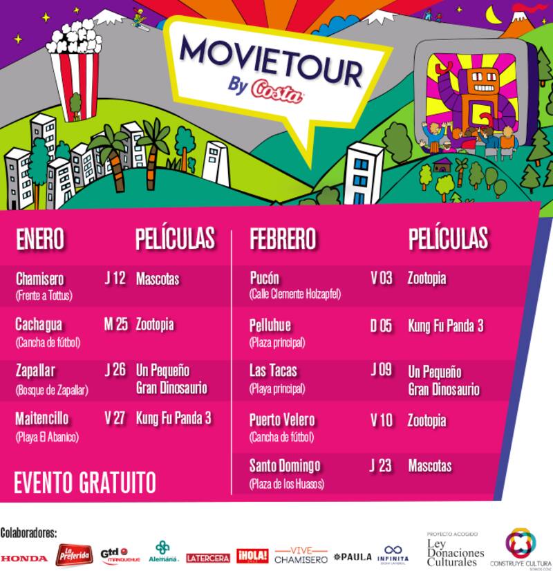 Estas exitosas cintas recorrerán distintas zonas de Chile entre la IV y la IX región, partiendo en Chamisero este jueves 12 de enero, pasando por Cachagua, Zapallar, Maitencillo, Pucón, Pelluhue, Las Tacas, Puerto Velero y terminando el jueves 23 de febrero en Santo Domingo.