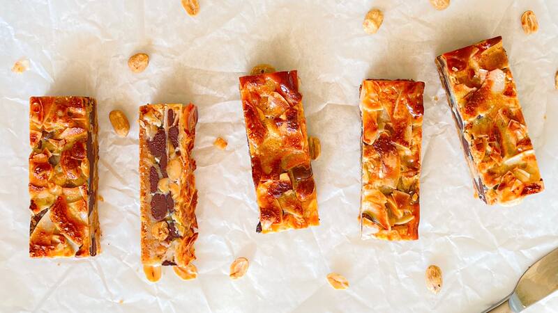 Cómo hacer barritas de caramelo con coco, maní y chocolate