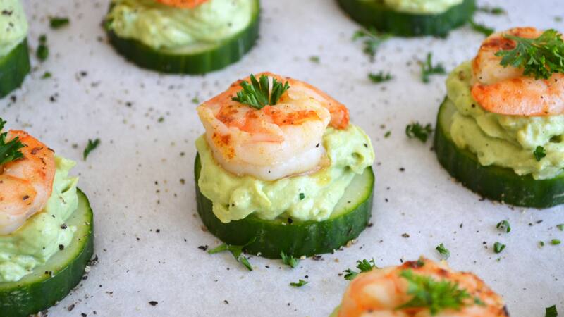 Cómo hacer bocados de camarón, palta y pepino