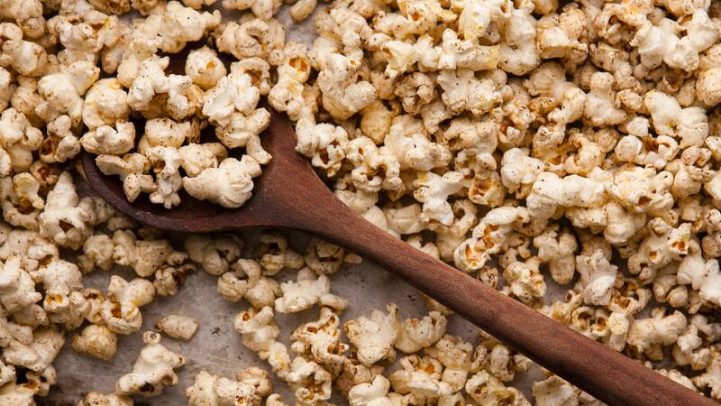 3. Cuando ya paren de explotar –o suene una que otra cada cierto tiempo– apagar el fuego, abrir la tapa y con las cabritas aún calientes añadir el ghee, el maple y el resto de garam masala. Si hay suficiente espacio en la olla, volver a poner la tapa y mover enérgicamente, si no hay espacio, revolver con dos cucharas de palo hasta que todo esté untado y parejo.