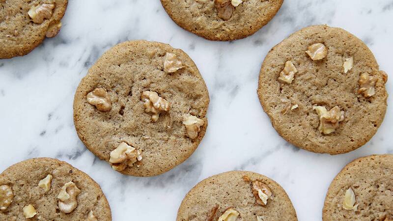5. Aplastar las bolitas de masa y poner nueces partidas en la superficie.