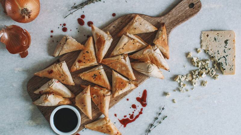 Cómo hacer empanaditas de masa philo con queso azul y cebolla caramelizada