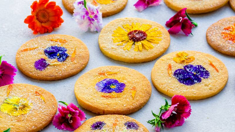En esta receta, la chef Carolina Rocco (@caroroccos) nos comparte una de sus preparaciones estrella: galletas con flores prensadas y comestibles. “Las venden en supermercados y están refrigeradas junto a las hierbas en la sección de verduras. Hay que tener ojo, porque no todas las flores se pueden comer, y siempre hay que revisar que no tengan químicos”, dice. Las galletas son de vainilla y naranja, y hay que trabajar su decoración rápido mientras sigan tibias, para que las flores y el azúcar se peguen bien.