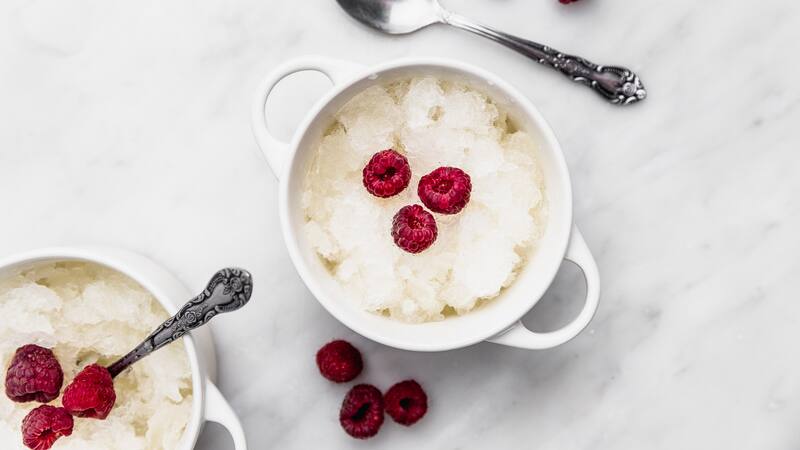 2. Con un tenedor, raspa el hielo formado para generar las hojuelas de hielo.