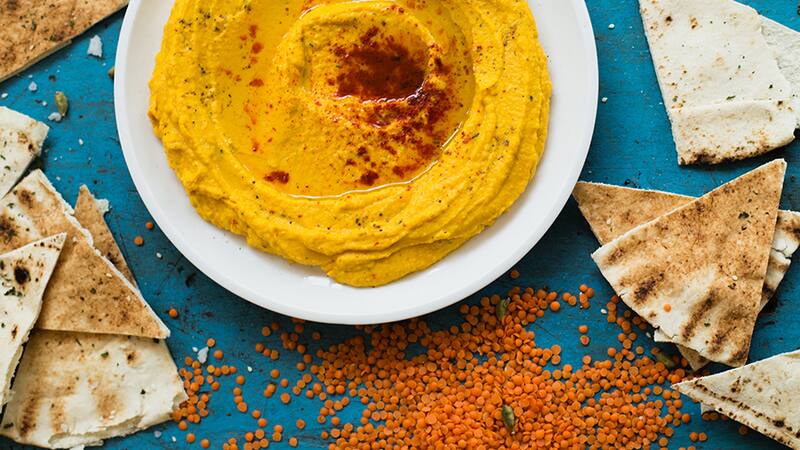 Cómo hacer hummus de lentejas rojas y zapallo camote