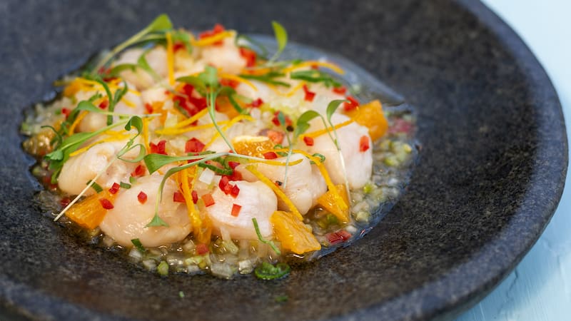 Los ostiones son regalos del mar muy versátiles, porque se les puede acompañar con muchos tipos de ingredientes, pero cuando es con frutas, quedan realmente exquisitos. El chef Sebastián Jara nos comparte esta sencilla receta de tiradito de ostiones a la mandarina, donde para marinarlos hay que exprimir el jugo de una, y dejar la otra cortada en gajos para adornar y comer. Además, el zeste de mandarina (la ralladura fina de su cáscara sin la parte blanca) le da aroma y sabor más potente todavía.