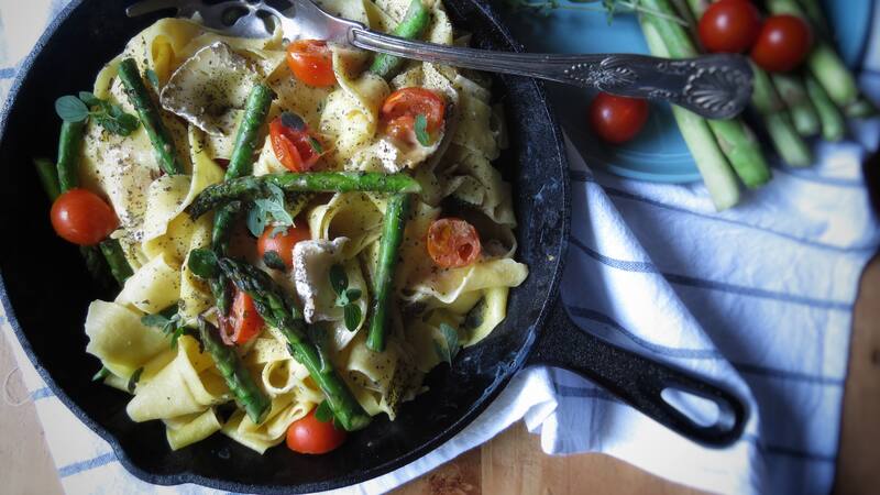 Cómo hacer pasta fresca con espárragos, tomatitos y brie
