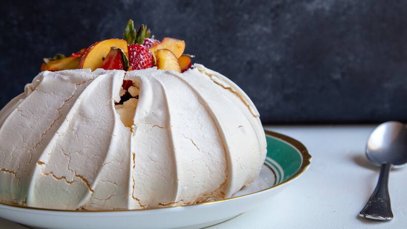 Este clásico de la repostería es una muy buena idea para sorprender a la hora del postre. Isidora y Pilar Kraemer (@clementina.chile) nos traen esta entretenida receta de pavlova, donde la idea es hacer un cerro con la mezcla de merengue y maicena para que quede la forma, y hornearla con mucho cuidado. Luego, para el relleno, usan crema chantilly sin azúcar, ya que la pavlova es lo suficientemente dulce, y frutos como las frutillas y el durazno, aunque uno puede rellenarlas con el que más le guste.