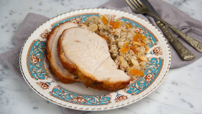 Cómo hacer pechuga de pavo con salsa de manzanas, con arroz integral en damascos turcos