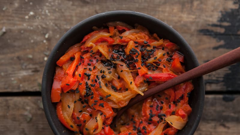 El dulzor del pimentón y el tomate son el secreto de la peperonata de la chef Antonia Cafati (@brotesyraices). Para liberar el sabor y la textura de ambos, es importante cocinarlos durante al menos 45 minutos, y luego sazonar a gusto. Al servir, la peperonata queda perfecta con quesos y galletas, pero si se quiere, también se puede preparar como acompañamiento de platos de fondo.