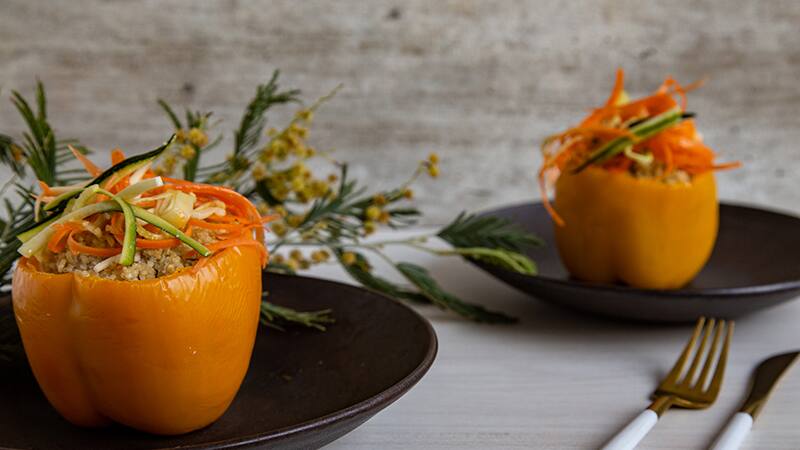 Cómo hacer pimentones amarillos rellenos con quínoa