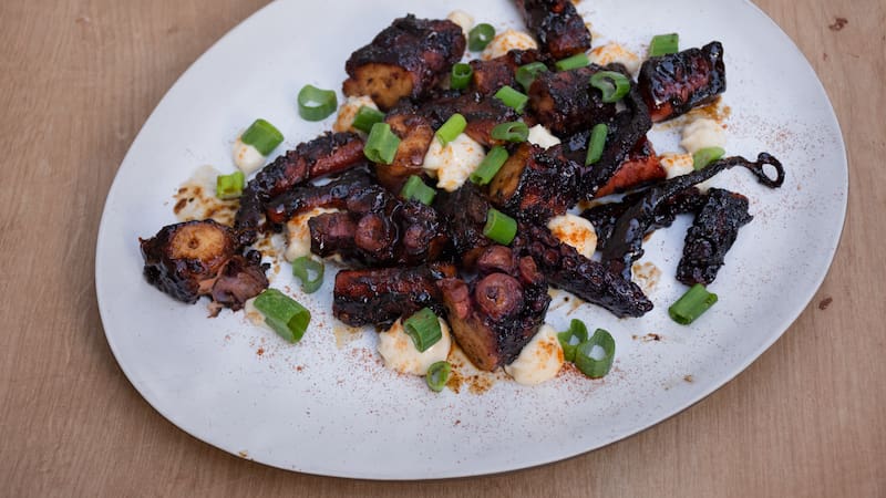 Este pulpo en salsa Hoisín es una receta estrella del chef Diego Fernandino (@diegococinacl). Es muy rica y fácil de preparar, y el secreto, está en cortar los trozos de pulpo en pedazos grandes, para que absorban bien todo el sabor de los condimentos. La salsa Hoisín es una de las más típicas de la gastronomía china, y podría ser equivalente a la conocida salsa BBQ por su textura pegajosa. Se encuentra en supermercados, y en tiendas de gastronomía China.