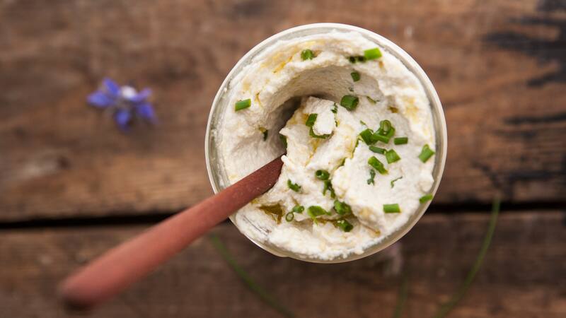 Esta es una nueva idea para hacer de la ricotta una preparación sana y original. El sabor que le da la chef Antonia Cafati (@brotesyraíces) es uno fiel al origen italiano del conocido queso: se mezcla con albahaca y aceite de oliva, pero en este caso, su consistencia es a partir de la suavidad de las semillas de girasol hidratadas. Las puedes encontrar en supermercados y tiendas de frutos secos y semillas.