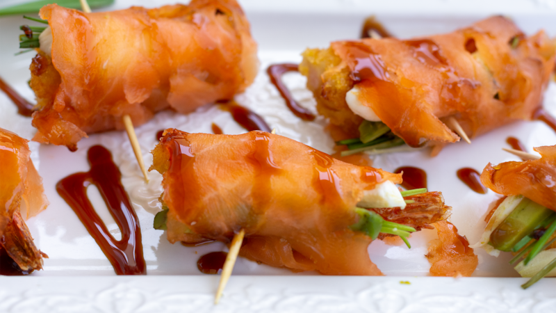Cómo hacer rollitos de salmón con queso azul, camarón y palta