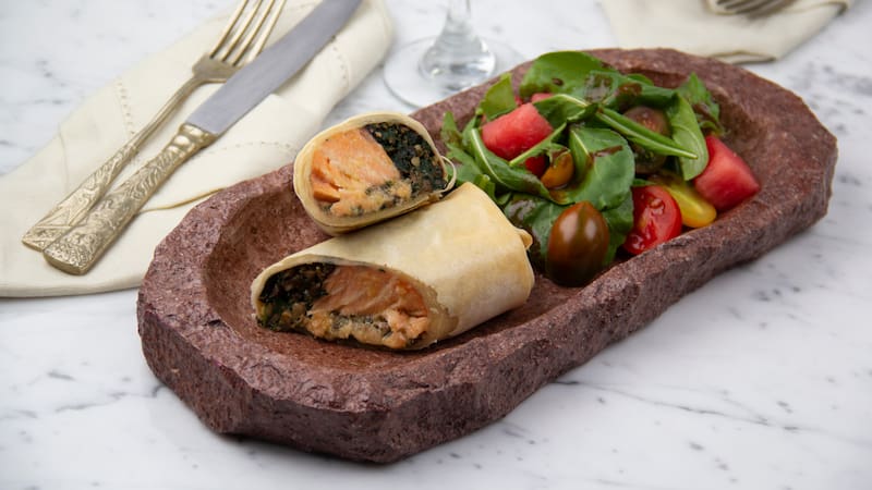 Esta entrada es una propuesta rica y sana, porque el sabor del salmón se potencia con las verduras y la menta. El chef Joaquín Cerda (joaco.cerda) la propone como una opción novedosa para prepararse para el plato de fondo, con algunos secretos en su preparación. Cuando se esté cocinando el relleno, hay que echar al sartén los champiñones al último junto a la menta y las nueces, así no se reducirá tanto su tamaño. El salmón no debe freírse antes, se cocina solo una vez que esté en el horno envuelto en la masa philo. La mantequilla para pintar la masa, es para que quede dorada, y si se quiere un color más intenso, puede ser con un poco de clara de huevo, igual que la masa de empanadas.