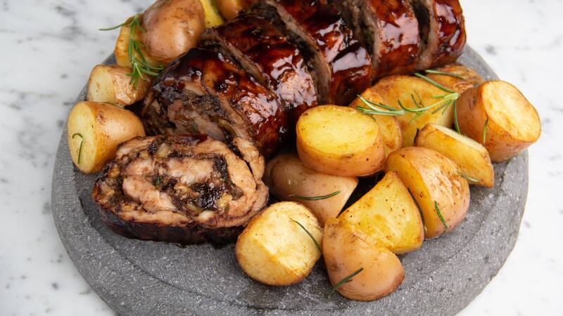 Cómo hacer solomillo de cerdo relleno de ciruelas, con papas al romero