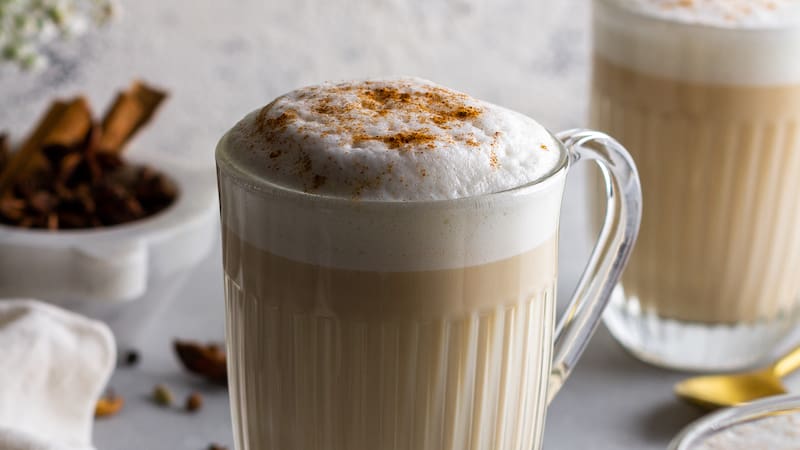 5. Llenar ¾ de un tazón con concentrado de té chai caliente –o a gusto–, y completar la taza con leche espumada. Espolvorear con canela para servir. Se puede variar la cantidad del concentrado de té chai a gusto.