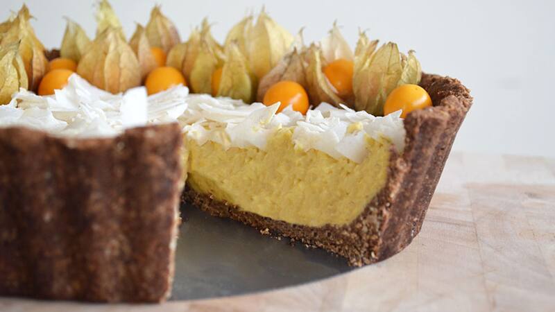 Esta tarta es fresca, fácil y rica. "Se puede decorar con coco laminado, coco rallado o una mermelada de mango, que resulta de cocinar el mango con un poco de endulzante y agar agar o gelatina para que espese", dice la cocinera.