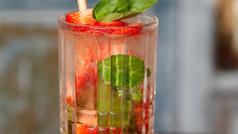 Cómo hacer un refrescante cóctel con albahaca, frutillas y espumante