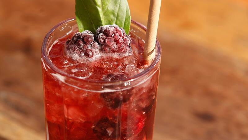1. En vaso largo agregar albahaca, jarabe de goma y zumo de limón y machacar. Agregar las moras, mucho hielo, el licor de cassis y el vodka con sabor a berries, revolver con ayuda de una cuchara y decorar con albahaca fresca.