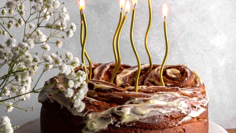 8. Antes de servir la torta de cinnamon roll, calentarla en el horno para servirla tibia, y esparcir el frosting encima.