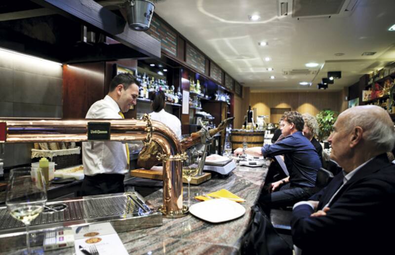 Los futbolistas del Barcelona, Sean Penn e incluso el rey de España, son algunas de las ilustres visitas que frecuentan La Taverna del Clínic, un clásico bar de tapas del Ensanche –Eixample– de Barcelona que, aunque siempre gozó de una cocina con buena fama, desde que se amplió con un nuevo salón en 2014 –decorado con lámparas y sillas de Philippe Starck– está con más lista de espera que nunca. Entre los atributos del restorán que han despertado el apetito de sus comensales, se suman una carta de vinos con 887 etiquetas, y platos con elaborados montajes que desfilan hacia las mesas con selectos ingredientes de la cocina catalana y mediterránea: ceps o setas del bosque, espárragos blancos, atún rojo.