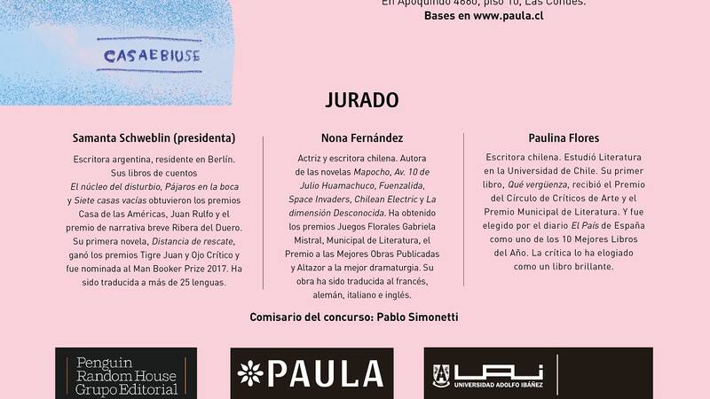 Hasta el 28 de agosto se puede participar en esta convocatoria, que este año tiene como jurado a las escritoras Samanta Schweblin, Nona Fernández y Paulina Flores. Se trata de una iniciativa conjunta entre Paula, Penguin Random House y Universidad Adolfo Ibáñez.