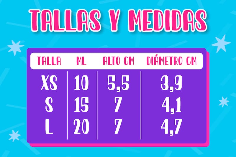 En cuanto a la elección de un tamaño adecuado para cada morfología, el parámetro más importante a considerar es el diámetro de la parte superior de la copa, ya que esta deberá quedar bien acoplada a las paredes vaginales, evitando así cualquier escape de flujo que irá recibiendo a lo largo del día o la noche. Lo importante es que no sea demasiado grande ni demasiado chica. Si se presentan problemas en medio de la búsqueda de esta medida ideal, se recomienda asistir a una evaluación de kinesiología pélvica, donde evaluarán las características anatómicas necesarias.