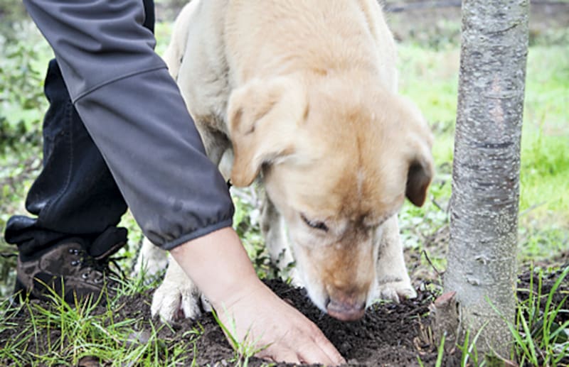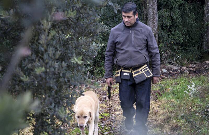 El olfato del perro labrador Polo está entrenado para percibir el intenso aroma que expelen las trufas al alcanzar su madurez, enterradas 30 cm bajo el suelo.