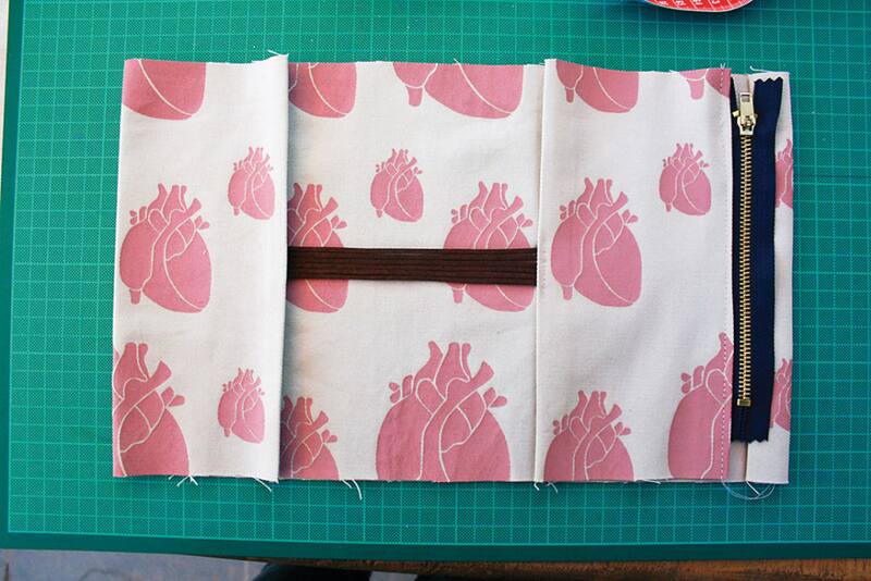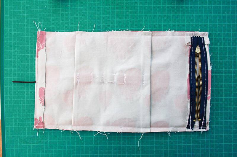 En la tela exterior, coser el cierre dejando 2 cm de borde para el estuche.