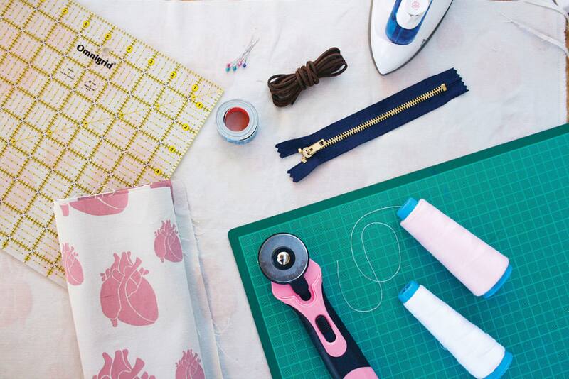 Para cortar tamaños pequeños de tela puedes usar herramientas para patchwork como un cuchillo rotativo, regla y base para cortar. Puedes encontrar todos estos materiales en Revesderecho.