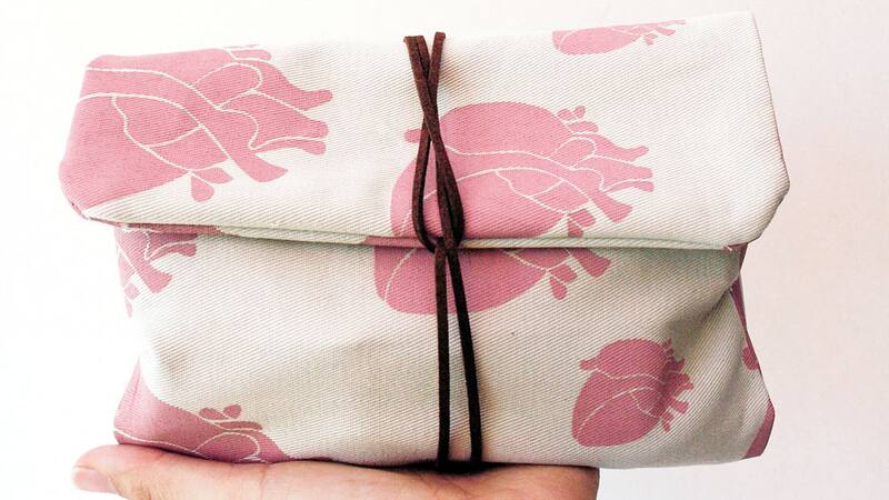 Poner una tela sobre la otra y marcar de izquierda a derecha en la tela interior: 0,5 cm de borde de costura; 9,5 cm para la tapa; 1 cm de pliegue; 14 cm centro; 1 cm de pliegue; 11 cm para el estuche; 0,5 cm para el cierre.