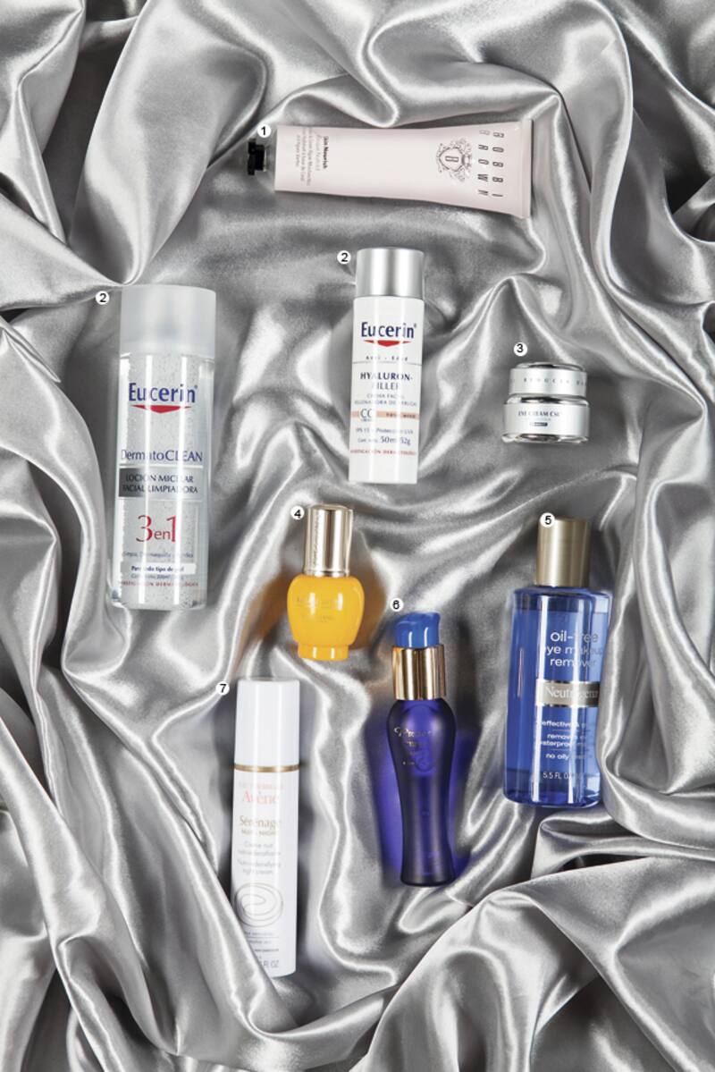 1. Máscara de rostro, $ 21.500, Bobbi Brown. 2. Pack tónico facial y CC Cream, $ 32.990, Eucerin. 3. Crema contorno de ojos, $ 29.990, Cellskinlab. 4. Crema contorno de ojos, $ 49.500, L'Occitane. 5. Desmaquillante de ojos, $ 4.590, Neutrogena. 6. Sérum para ojos, $109.990, Premier. 7. Sérum facial, $ 25.990, Avène.