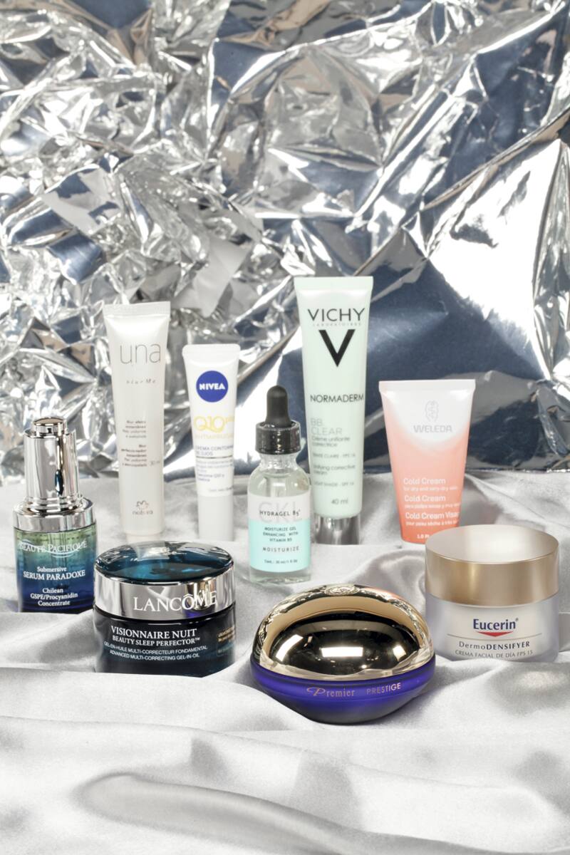 1. Corrector instantáneo, $10.200, Natura Una. 2. Contorno de ojos, $ 8.990, Nivea. 3. BB Clear, $16.990, Vichy. 4. Crema facial, $ 9.650, Weleda. 5. Sérum, $ 49.900, Beauté Pacifique. 6. Sérum, $ 29.990, CKL. 7. Crema facial, $ 72.990, Lancôme. 8. Crema de noche, $ 124.990, Premier. 9. Crema de día, $ 24.990, Eucerin.