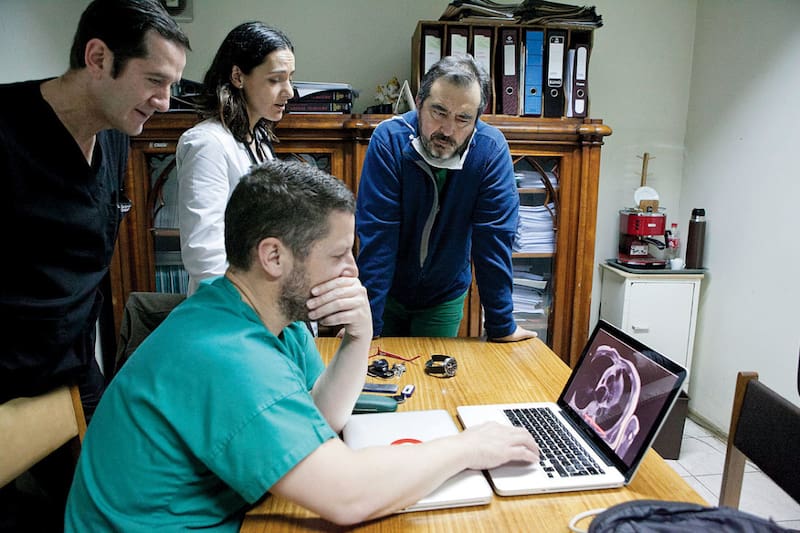 En su oficina del Hospital San Borja Arriarán, Baeza discute con otros médicos los pasos a seguir con uno de los tantos pacientes a la espera de cirugía.
