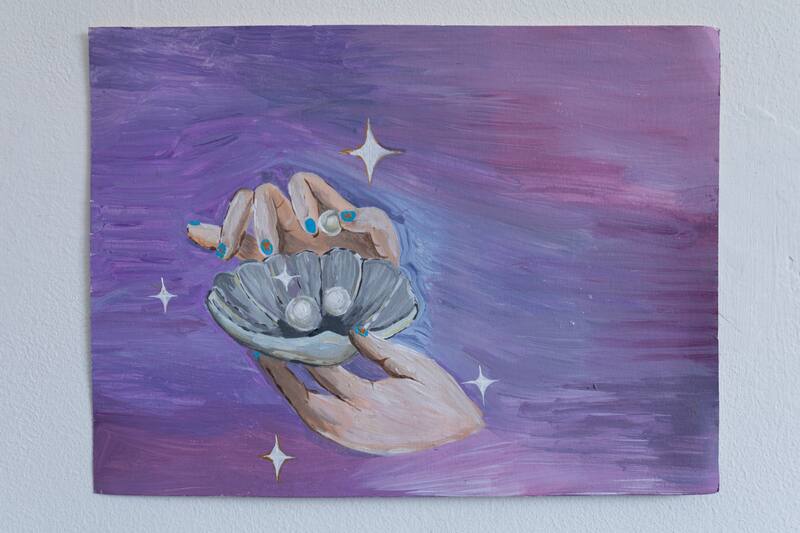 En general, me inspira mucho la música y el imaginario que gira en torno a cierto tipo de música. Puedo escuchar a Violeta Parra y me emociona profundamente, pero eso mismo también me pasa con un reggaetón. Tengo anotaciones en las que acumulo frases de canciones separadas por temáticas; amor, creación, y así. Muchas veces recurro a esas ideas para pintar. Ese es un primer paso importante en mi proceso; visualizar imágenes desde la música y plasmarlas al lienzo.
